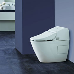 6-Toto® Washlet® G500 with Integrated Toilet The Toto® Washlet® G500 comes with an integrated toilet that results in a sleek, compact design. The Dual-Max Cyclone™ flush system uses gravity in conjunction with the cyclone bowl to flush clean, and SanaGloss® to keep it looking that way. Thoughtful features like a sensor-activated lid that lifts as you approach and automatic flushing as you depart round out this luxury toilet. The Washlet® uses Toto's® streamlined water wand with five spray settings, including oscillating and pulsing spray options. This system also comes with an air deodorizing system, adjustable water and seat temperatures, a warm-air dryer, and an easy-to-read remote control. Model: View All Washlets |