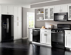 1-Whirlpool® Ice Collection Whirlpool® has outdone itself with the new Ice Collection. By taking cues from streamlined modern design as well as the increasing desire for transitional design, they have created the Ice Collection. Available in White Ice, Black Ice, and Stainless, these appliances transform the look and feel of your kitchen and include details such as stainless steel accents, user-friendly handles, intuitive controls graphics and larger oven windows. Way beyond simple appearances, Whirlpool® has packaged the newest technology into these sleek appliances. The ranges uses AccuBake®,Whirlpool's® patented convection cooking system, and the dishwasher features PowerScour™ ; a system of 36 targeted spray jets which scours large pots and pans without pre-rinsing. Not to mention the entire suite is ENERGY STAR qualified. Model: Read More About the Whirlpool® Ice Collection |