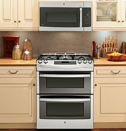 12-GE® Profile™ Series 30" Slide-In Double Oven Gas Range If the kitchen is the hub of the house, then a great range is its heartbeat. GE® is filling a void in the industry with the first and only slide-in double oven gas range. The slide-in look gives you a seamless, custom built-in appearance. With the largest slide-in capacity in the industry, 6.8 cubic feet, this oven is perfect for preparing a large feast. And they work just as well when cooking for just yourself. The fact that these double ovens are a bit smaller than a traditional double oven means shorter preheating times. As if that wasn't enough, this is the only oven in the industry with a double-broiler. Other features of this high-tech machine include an integrated griddle for frying hamburgers or preparing pancakes and continuous grates that make it easy to slide pans. The tri-ring 20,000-BTU burner furthers the slide-ins flexibility allowing you to melt a small pan of chocolate or quickly boil some water for pasta. All in all, this oven is a winner. Model: Read more about the GE® Profile™ Series |