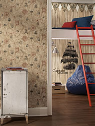 9-York® Wallcoverings Cool Kids Collection If you have young kids, try a wallcovering from the new Cool Kids Collection from York® Wallcoverings. With a selection of kid-friendly designs from pastel prints to race car gauges, this collection is perfect for your kids. With coordinating borders it is easy to create the perfect oasis for your child. The room pictured above uses the Pirate Map Sidewall wallpaper and the Pirates Pendant border to create a room that is perfect for your young adventurer. The wallpaper is available in four color choices including tans, grays, and russet. Model: Shop this look |