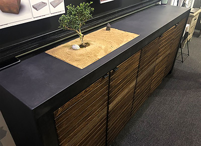 HearthCabinet™, you can bring the warmth of a real fire to your interior or exterior without worrying about venting it, so you can install a fireplace virtually anywhere! These fireplaces meet strict safety criteria and use pre-filled alcohol gel cartridges that burn cleanly with no smoke or odor. There are plenty of ways to personalize the firebox so it works with your aesthetic, and of course you can choose the surround of your liking to finish the look. Designer Cliff Young incorporated fireplaces into a lovely console table and a bold, faceted metallic surround for the show—just imagine what you could do in your own home!
